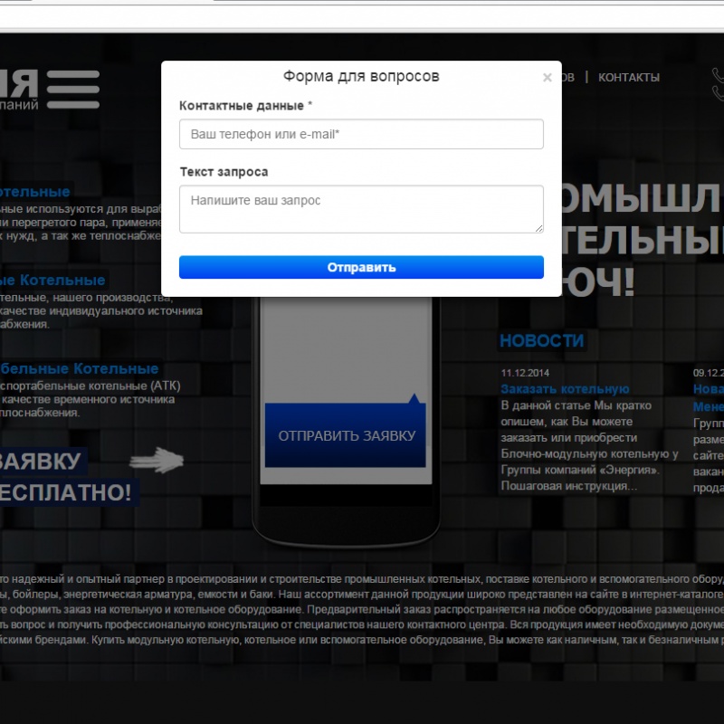 Обращаем Ваше внимание на особенности формы заказа на сайте Группы компаний "Энергия"