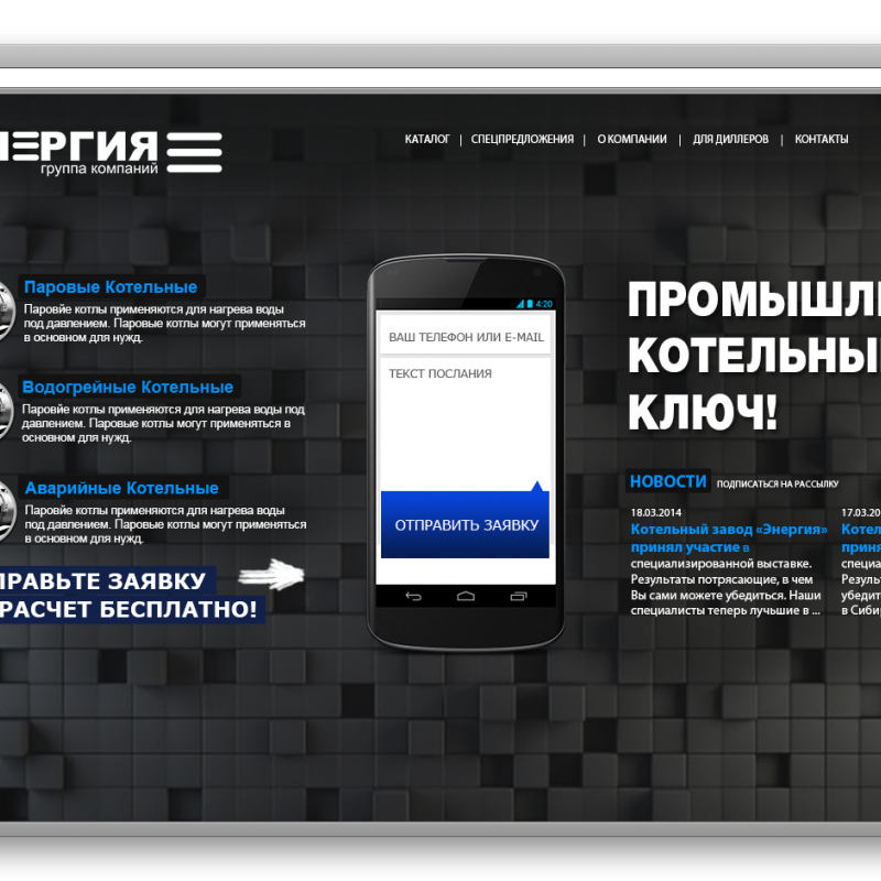 Мы запустили совершенно новый и очень удобный сайт специально для Вас! Здесь Вы найдете информацию о нашем производстве блочно-модульных котельных, о продаже и поставке котельного оборудования такого как паровые, водогрейные или твердотопливные котлы, горелки, теплообменники и другое оборудование от российских и зарубежных марок. Мы предлагаем только лучшее оборудование по привлекательной цене с отличным выбором из каталога. В разделе Акции мы периодически публикуем горячие спец. предложения. Следите за информацией у нас на сайте и возможно это поможет вам при реализации поставленных задач!