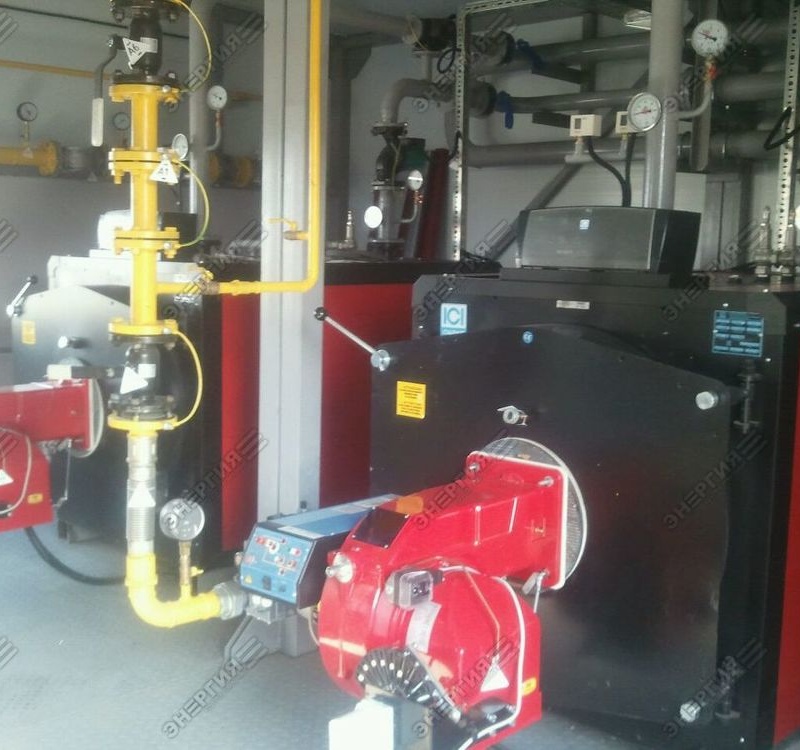 Котельная состоит из двух блок модулей общими размера 9х6х3. В данной котельной запроектированы и смонтированы водогрейных котла марки REX 62 фирмы ICI Caldaie общей мощностью 1240 кВт , общая мощность котельной составляет 1,2 МВт. С данными котлами используются газовые горелочные устройства итальянской марки CIB UNIGAS. Насосное оборудование в данной котельной применено немецкой марки WILO, теплообменное оборудование Ридан. Автоматика котельной подразумевает работу котельной в полностью автоматическом режиме.