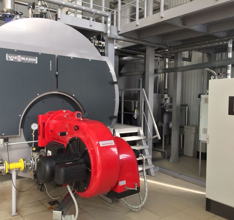 Первая очередь котельной выполнена на базе котельного оборудования немецкой фирмы VIESSMANN и горелочного оборудования фирмыWeishaupt. В котельной установлен котел паровой Vitomax 200 HS V75B 8000 кг/ч, горелка газодизельная Weishaupt WM-GL 50/1-A, деаэратор Viessmann WAS200-HS10.0 и другое дополнительное оборудование.