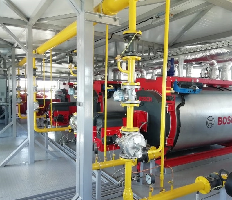 Котельная предназначена для теплоснабжение нового жилого микрорайон и выполнена на базе 4-х водогрейных котлов BOSCH UT-L18 мощностью по 2500 кВт каждый в комплекте с комбинированными газ/дизель горелочными устройствами Oilon GKP-280MH. Котельная полностью автоматизированная и не требует присутствия обслуживающего персонала.