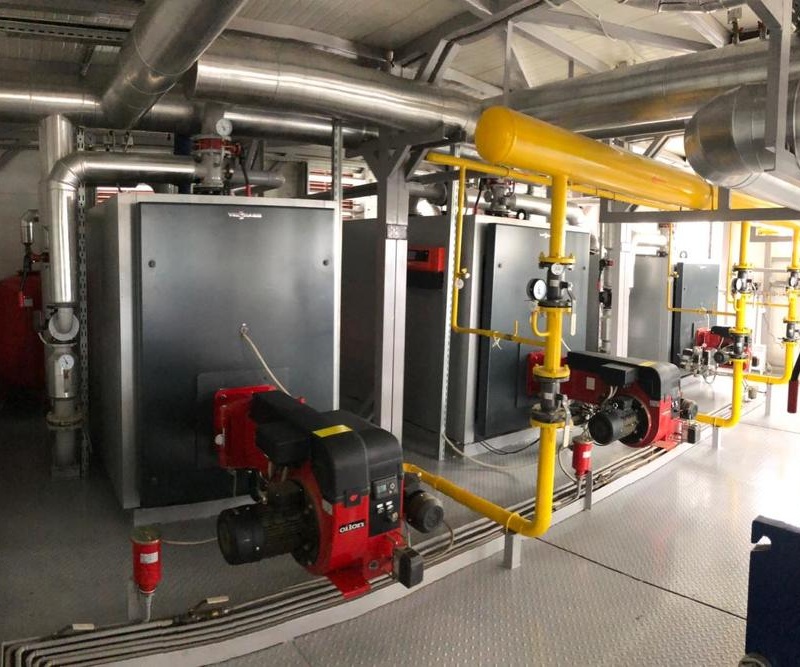 Котельная выполнена на базе трех водогрейных котлов немецкой фирмы VIESSMANN в комплекте с комбинированными газ/дизель горелочными устройствами Финской фирмы Oilon. Котельная полностью автоматизированная и не требует присутствия обслуживающего персонала.
