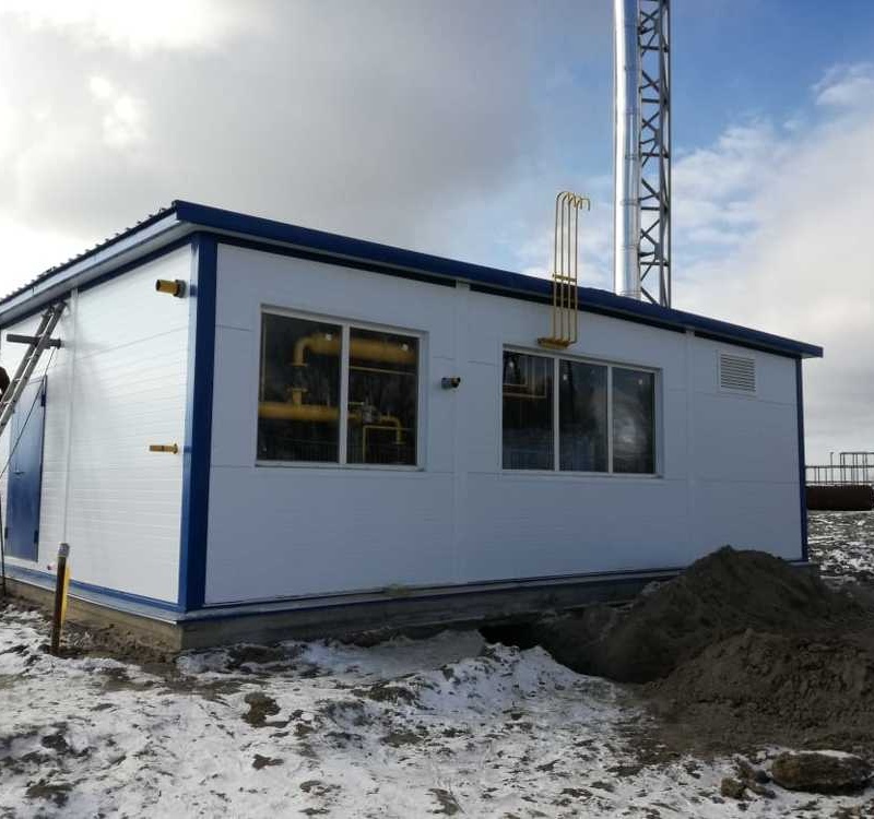 Котельная выполнена из 2-х блок-модулей заводской готовности и предназначена для пароснабжения производства по разогреву сырья.