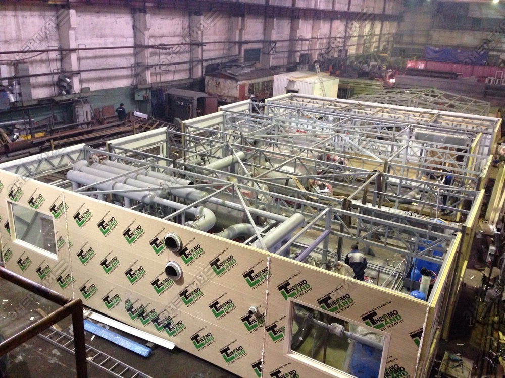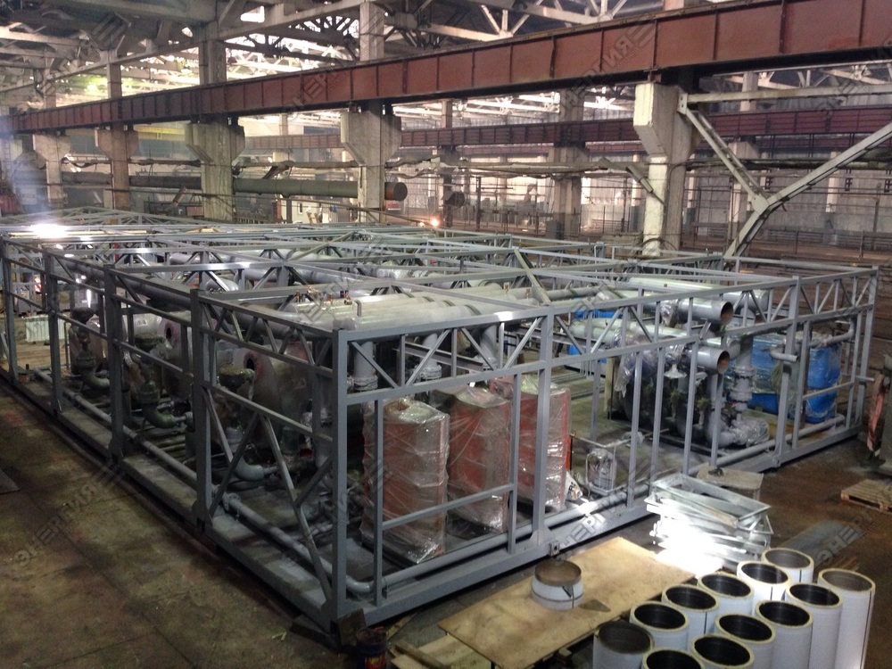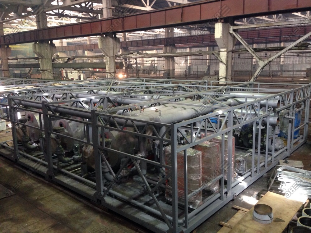 Водогрейная блочно модульная котельная мощностью 7500 кВт работающая на дизельном топливе для нужд теплоснабжения жилых домов в Забайкальском крае.