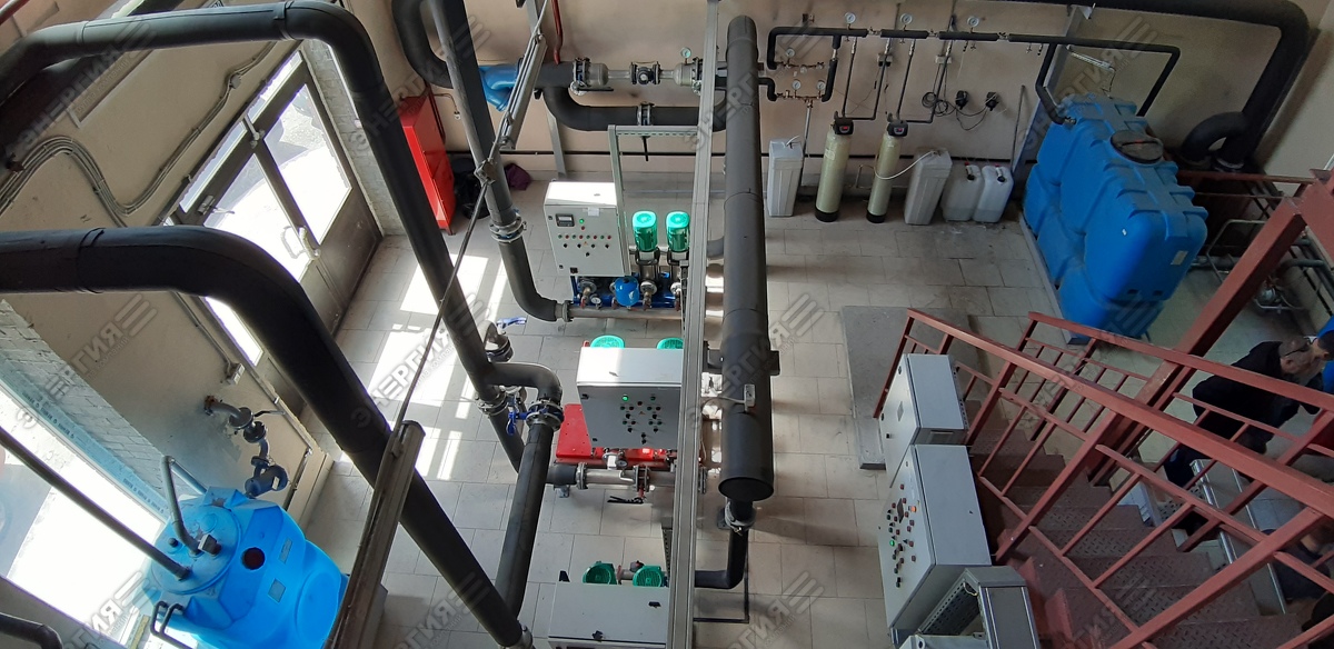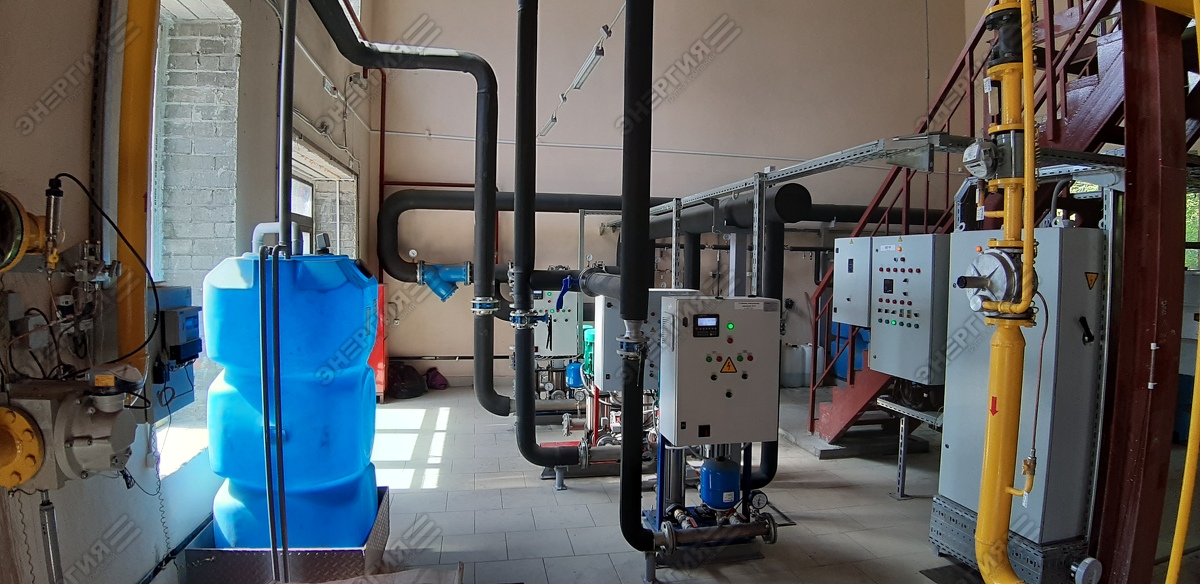 Стационарная газовая водогрейная котельная мощностью 10,45 МВт. Основное топливо — природный газ, аварийное — дизельное топливо.