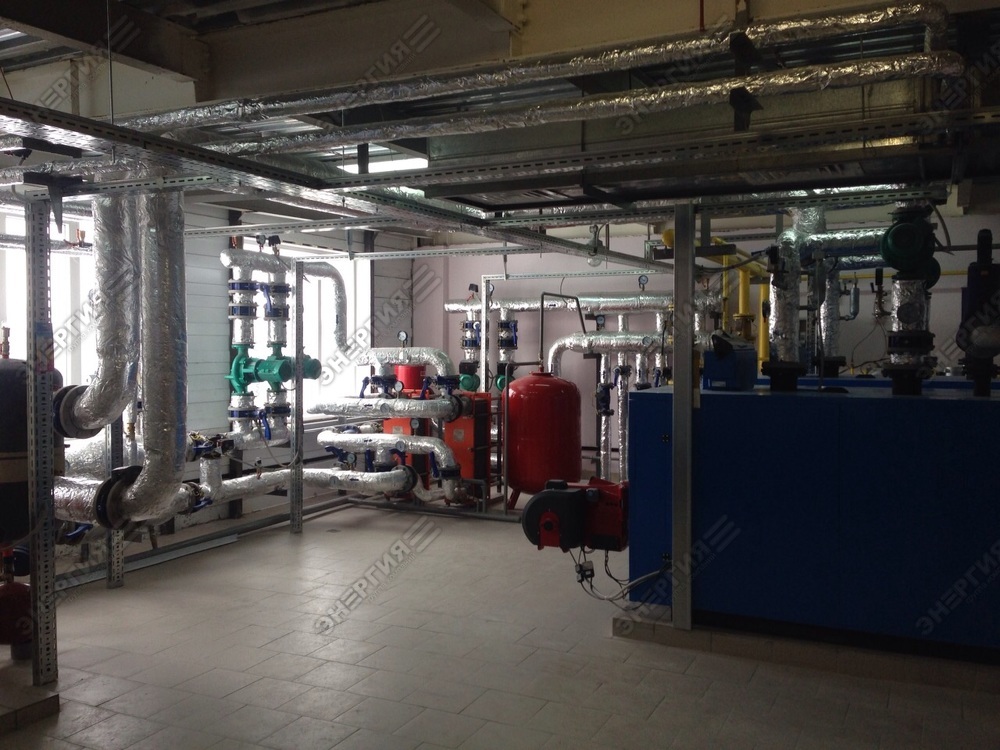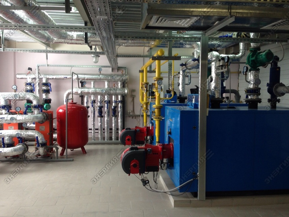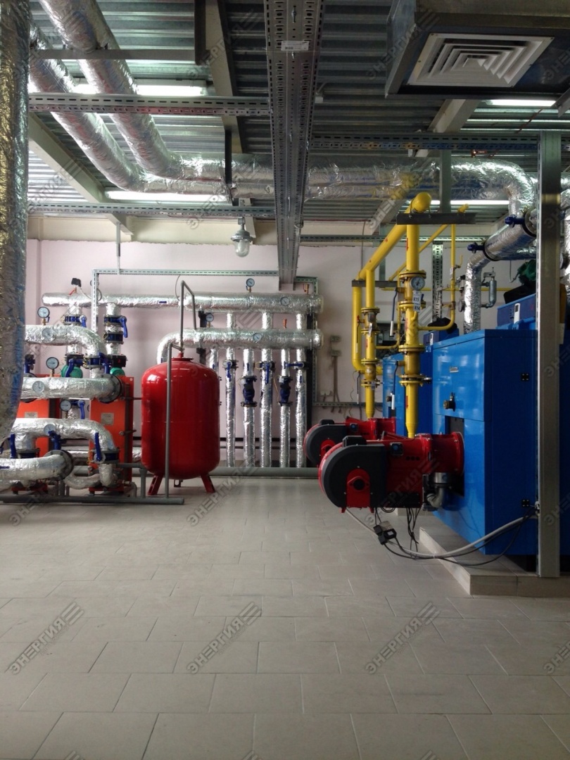 Крышная водогрейная котельная, мощность — 1,5 МВт, используемое топливо — газ.