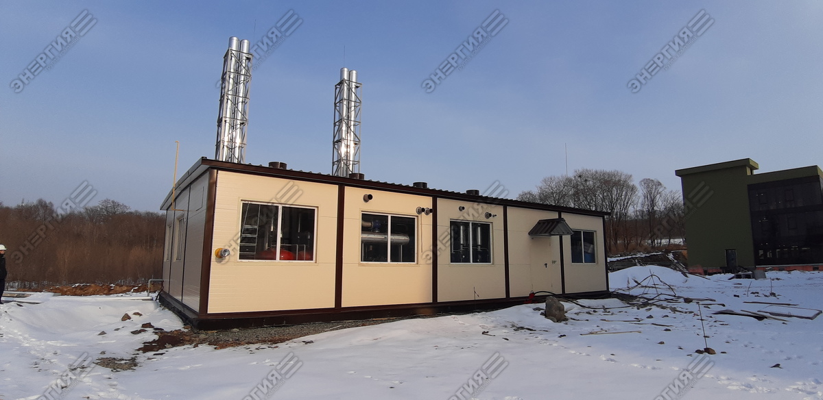 Модульная паровая котельная МПКУ-12ГД паропроизводительностью 12 т/ч. Рабочее давление пара — 8 бар, пар насыщенный. Основное топливо — природный газ, резервное — дизельное. Подземное хранилище резервного дизельного топлива общим объемом 50 м³.