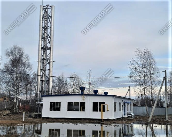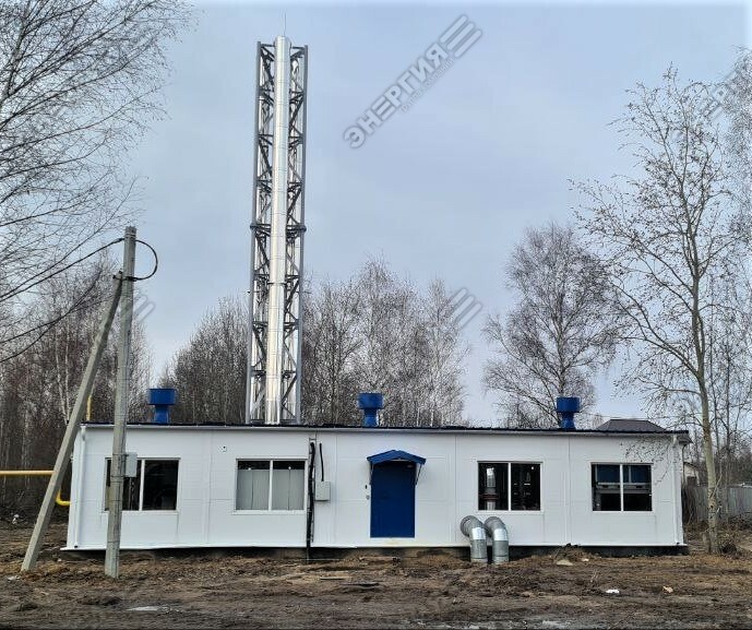 Модульная водогрейная котельная МВКУ-12,6Г тепловой мощностью 12,6 МВт. Топливо — природный газ. Теплоснабжение посёлка Авсюнино, Орехово-Зуевского ГО, Московской области.