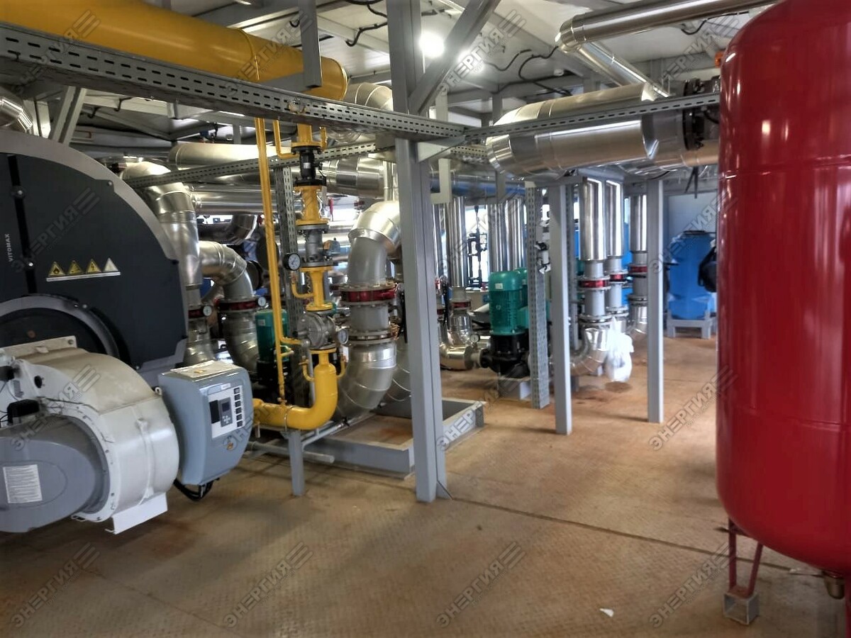 Модульная водогрейная котельная МВКУ-12,6Г тепловой мощностью 12,6 МВт. Топливо — природный газ.