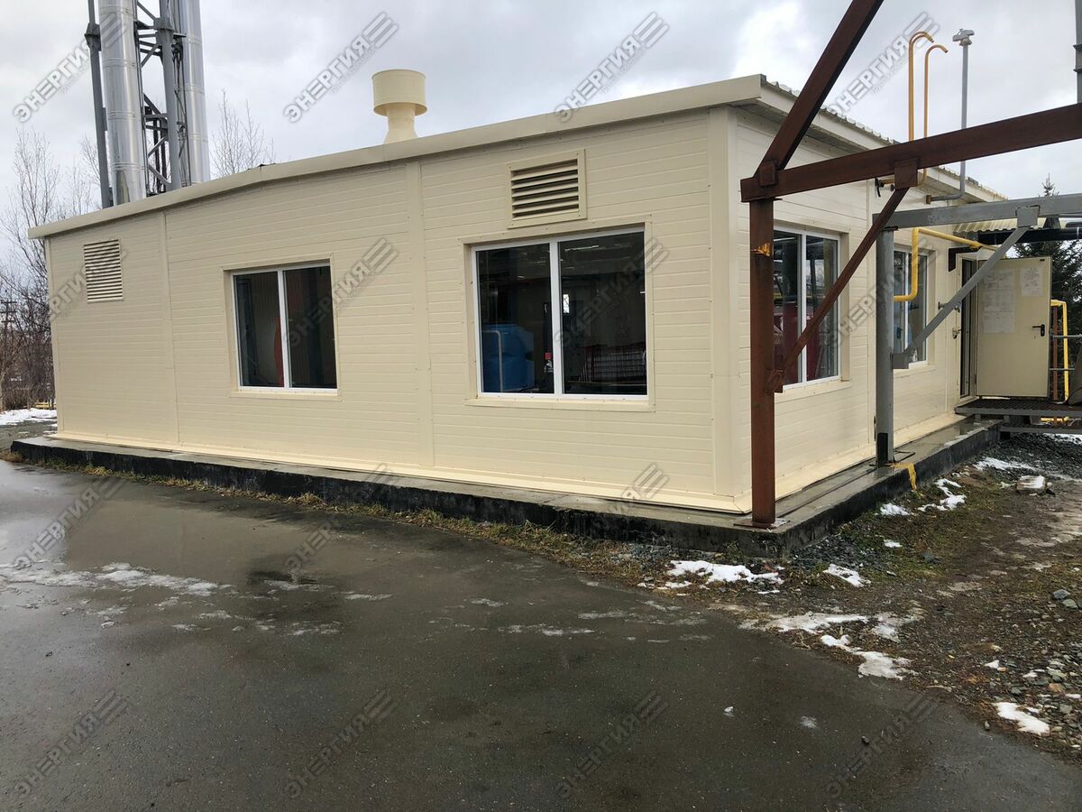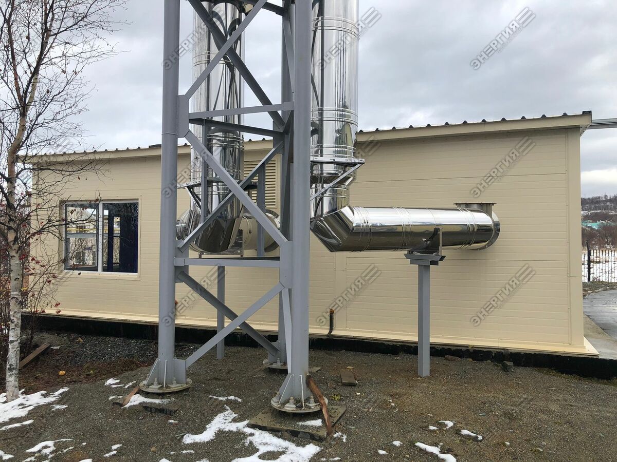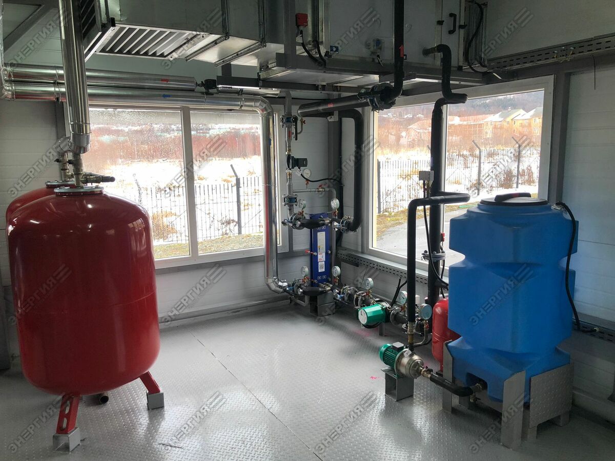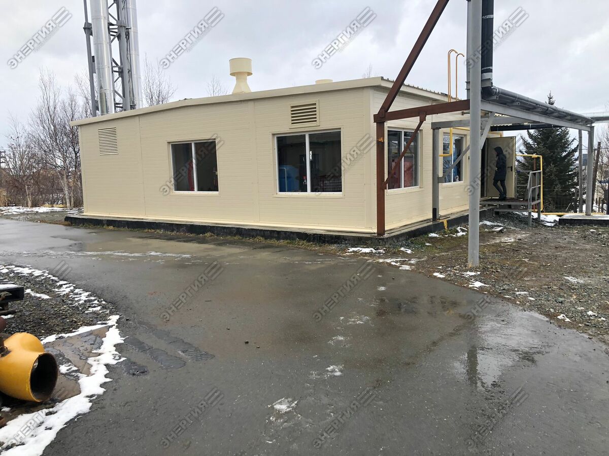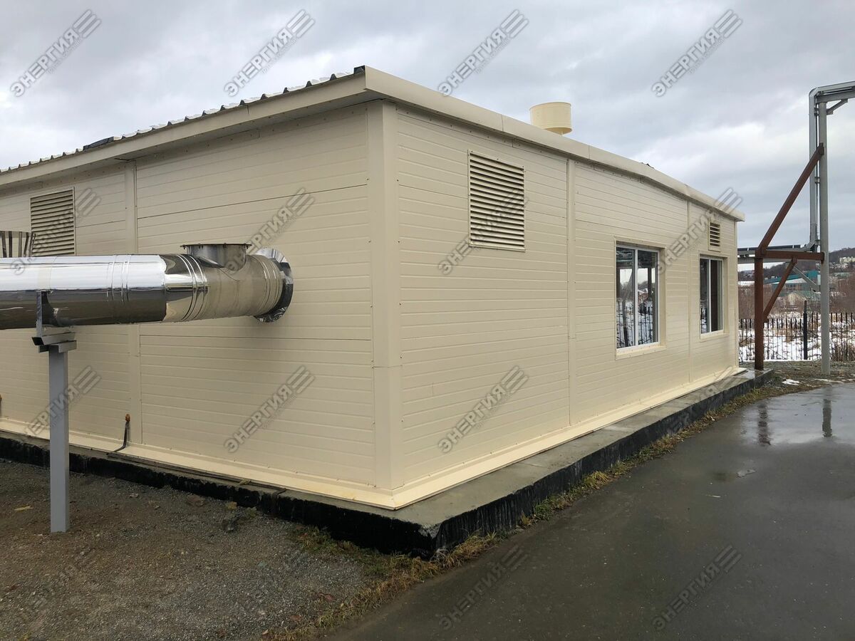 Модульная водогрейная котельная МВКУ-7,2ГД тепловой мощностью 7250 кВт. Основное топливо — природный газ, резервное — дизельное топливо. Теплоснабжение жилого микрорайона в г. Южно-Сахалинске.