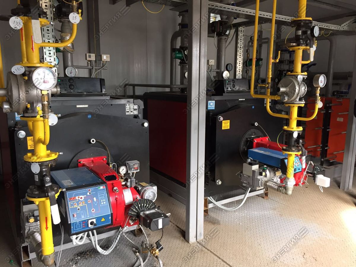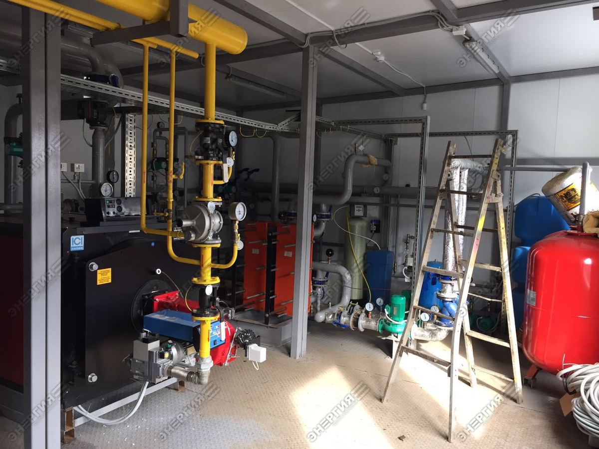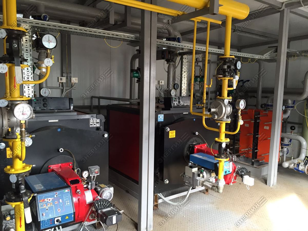 Котельная состоит из четырех блоков, из которых в трех блок-модулях установлено котельное и тепломеханическое оборудование, в 1 блок модуле установлена аварийная дизель электростанция и бак запаса дизельного топлива. В котельной размещено два водогрейных котла итальянской фирмы «ICI Caldaie» REX 50, горелочные устройства итальянской фирмы «Cib Unigas», насосное оборудование WILO. Автоматика котельной предполагает работу в полностью автоматическом режиме.