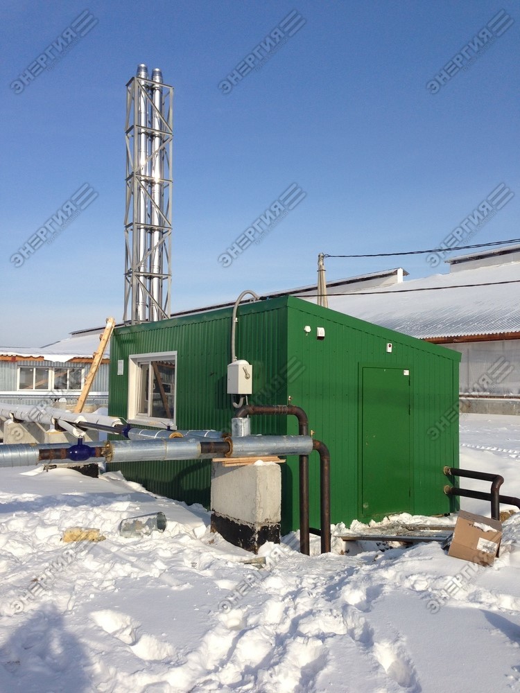 Водогрейная блочно модульная котельная мощностью 700 кВт работающая на дизельном топливе для нужд теплоснабжения животноводческого комплекса расположенного в Омской области, г. Омск.