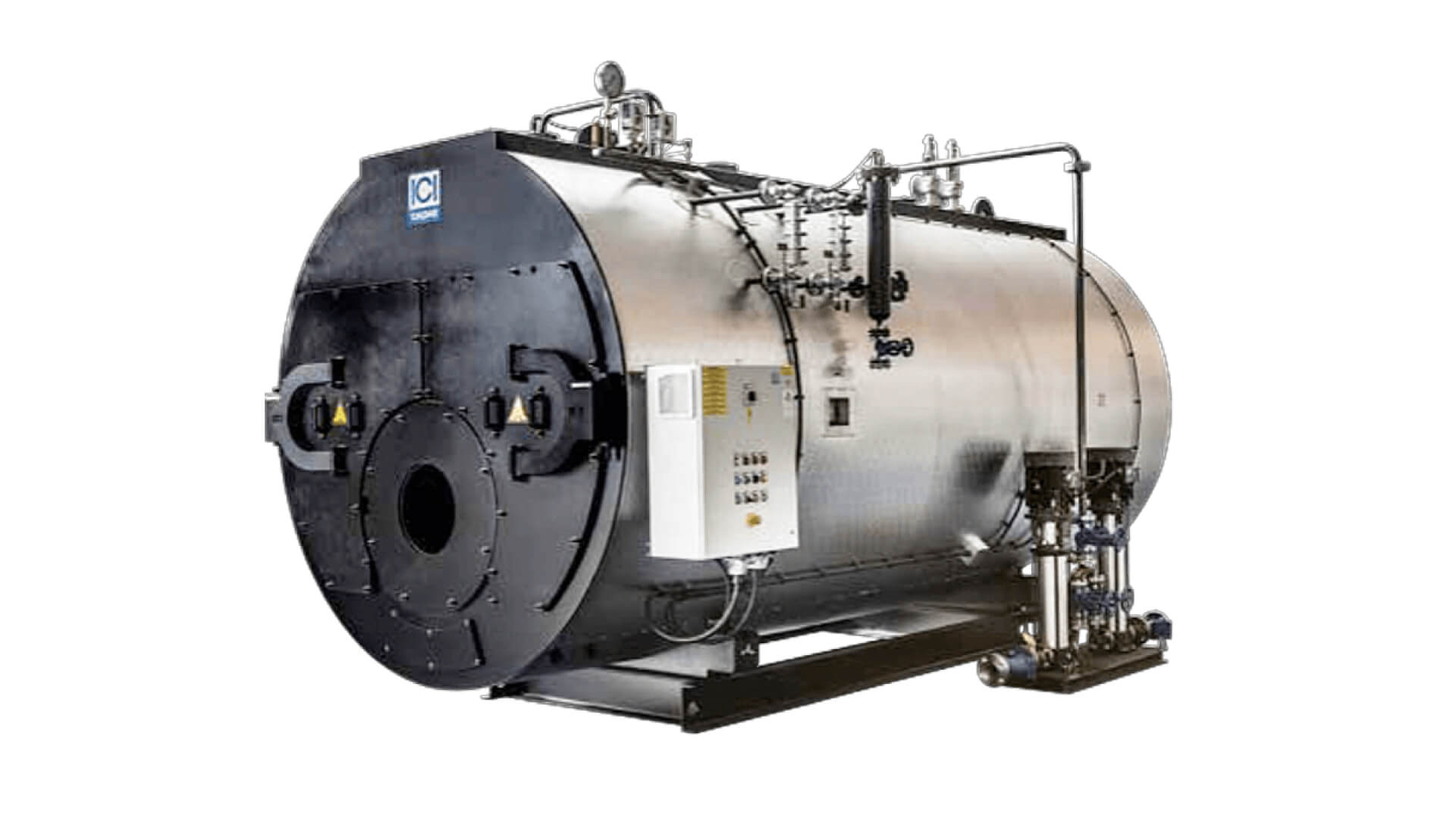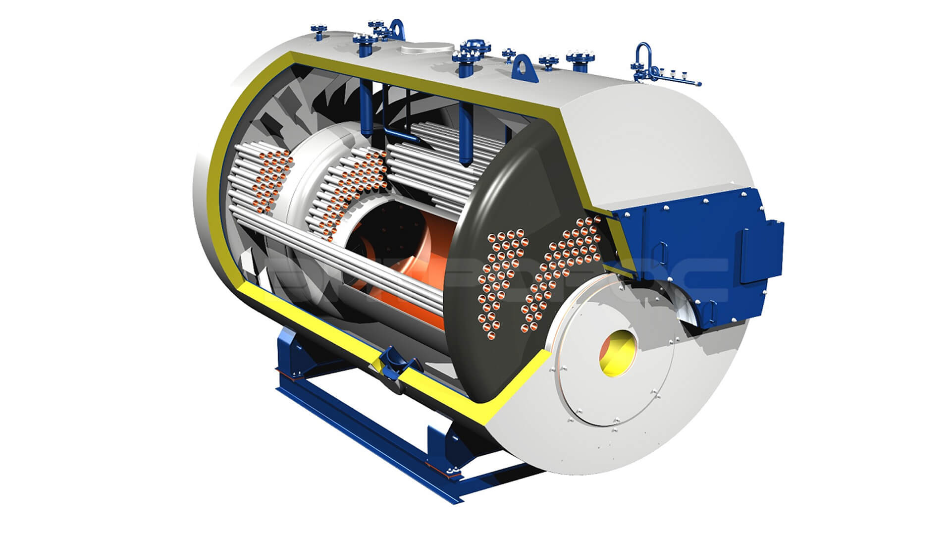 Жаротрубные паровые котлы производятся в двух и трехходовом исполнении. Сжигание топлива происходит в жаровой трубе, образовавшиеся дымовые газы движутся по одному или двум ходам дымогарных труб соответственно, при этом отдавая часть своей энергии воде, находящейся в объеме котла. Происходит догрев воды до точки насыщения при заданном рабочем давлении и изменение ее агрегатного состояния.